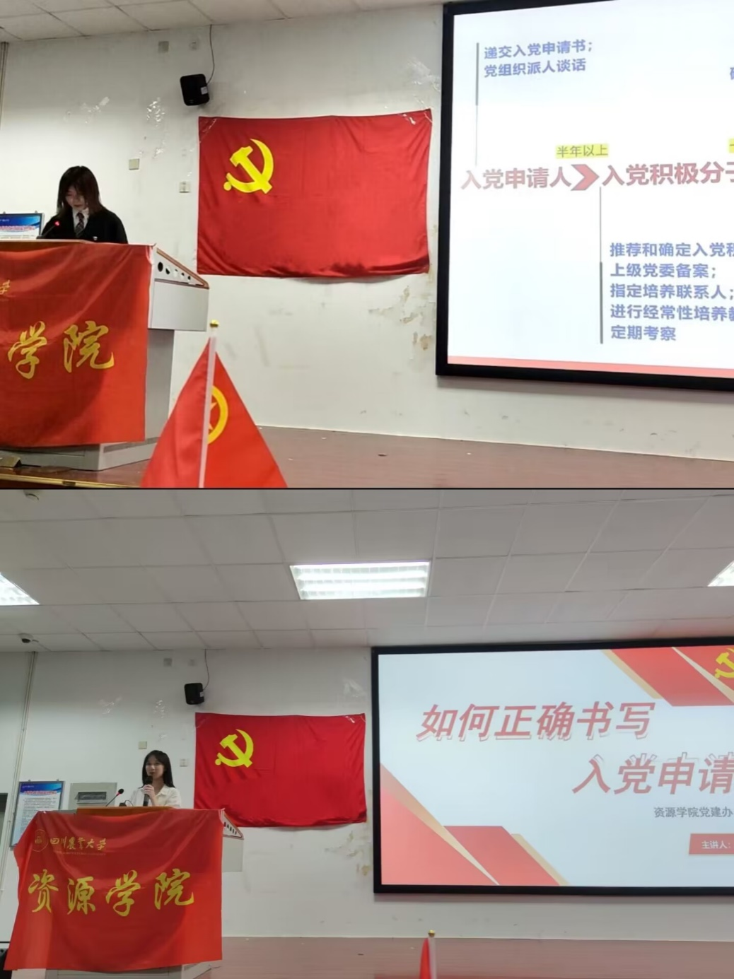 导航痕迹 欧冠官方网站 欧冠投注官网入口  学院首页  学生工作  正文 学院新闻 通知公告 科研动态 就业服务 学生工作 聚焦资源 师生风采 学院开展“牢记嘱托,感恩奋进”示范性主题班团活动 2023年09月25日 为深入贯彻习近平总书记来川视察重要指示精神,落实党中央致词精神和团十九大部署,动员引领广大团员青年在强国建设、民族复兴伟业中挺膺担当,贡献青春活力,9月22日,学院团委联合2023级新生班团支部开展“牢记嘱托,感恩奋进”示范性主题班团活动,全体团员青年共计240余人参加。 学院党委办公室副主任兼团委副书记张婷雯从“青年,你为什么入团”“一学一做是什么”切入,带领团员青年学习团的十九大精神,号召青年将个人前途与时代发展紧密联系起来,把个人理想奋斗融入民族复兴伟业。团员青年们踊跃互动,展现青春澎湃朝气。 欧冠官方网站第十期青马工程学员、学院团委学生兼职副书记石欣怡与团员青年们一起重“走”习近平总书记的来川足迹,深入学习习近平总书记来川视察重要指示精神,牢记殷殷嘱托,坚定理想信念,指明了当代青年成长发展的时代主题与历史使命,闪烁着马克思主义青年观的真理光芒。 邀请社会实践优秀团队—“源”梦凉山,做土壤摇篮,助乡村振兴负责人张琪与团员青年“话”成长,分享志愿、双创实践经历,鼓舞团员青年们走出校门、接触社会、了解国情,实现理论与实践相结合,激励团员青年在社会实践中绽放出绚烂的青春之花,以实际行动奋力答好青春之问,担好青春之责。 校史悠悠,薪火相传;百年名校,风华正茂。通过开展校史知识竞答活动和“校史麦穗”活动,团员青年们更好地了解了川农大的历史,增强了作为川农学子的自豪感,传承弘扬川农大特色文化,使之成为一部写不完的生命成长史! 党建办副主任吴金懿,秘书部部长刘栩玥为新生团员青年们讲解了入党申请书的书写规范以及入党流程,鼓励团员青年积极入党,以严格的标准要求自己,以蓬勃向上的精神面貌积极向党组织靠拢。 最后,团员青年们齐唱团歌,同学们纷纷表示本次活动干货满满,提升了自己的思想觉悟,至此本次“牢记嘱托,感恩奋进”示范性主题班团活动完美落幕。 上一条:欧冠投注官网入口学生组织招新工作完满结束 下一条:学院党员先锋岗助力学院迎新工作顺利开展 【关闭】