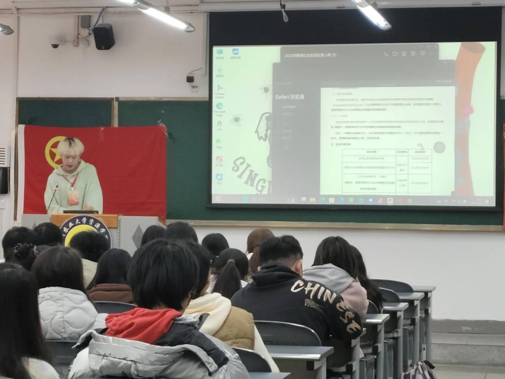 导航痕迹 欧冠官方网站 欧冠投注官网入口 学院首页 学院新闻 正文 学院新闻 通知公告 科研动态 就业服务 学生工作 聚焦资源 师生风采 欧冠投注官网入口召开2025年寒假社会实践动员会 2024年12月09日 作者:郭洪莲 审核:张宏霞 为积极鼓励更多欧冠投注官网入口学子踊跃参与2025年寒假社会实践活动,有效提升学生的社会责任感与参与意识,学院于12月6日召开了2025年寒假社会实践宣讲会暨动员会。 大会开场,院党委办公室主任兼团委书记刘丹就社会实践的传承创新,社会实践是理论联系实际的“必修课”发表讲话,强调实践能锤炼学子意志、拓宽视野,鼓励大家秉持求知探索之心,去挖掘社会热点、民生痛点,用所学解难题;还强调安全纪律,要求严守实践地规则与要求,做好预案,此次讲话引发了同学们的热烈讨论和踊跃提问,成功地将大会氛围推向了高潮。 图为刘丹对全体成员动员 随后,院团委学生实践与志愿服务中心干事罗紫菡同学对寒假社会实践的核心主题与专项内容进行了深入阐述,并详细解读了实践活动前中后期的材料提交要求,为同学们指出了实践方向,以及申报本次社会实践所需的重要材料,全方位解答了同学们的疑惑。 最后,团委学生兼职副书记赖鑫同学对本次动员会就项目申报、立项流程做详解,重点解读新政策亮点进行了强调,助力学同学们精准规划实践方案。同时,他指出社会实践不仅是提升自我能力的有效渠道,更是丰富个人履历的重要途径。他呼吁每一位同学深入基层,在社会服务的广阔天地中充分施展自身才华,将此次寒假社会实践作为提升自我的难得契机,在实践中增长知识、磨砺意志、增长“青春智慧”。 上一条:第六届“派森诺杯”微生物培养皿艺术设计大赛决赛圆满落幕 下一条:用实效促学风,学院持续深化学风建设 【关闭】