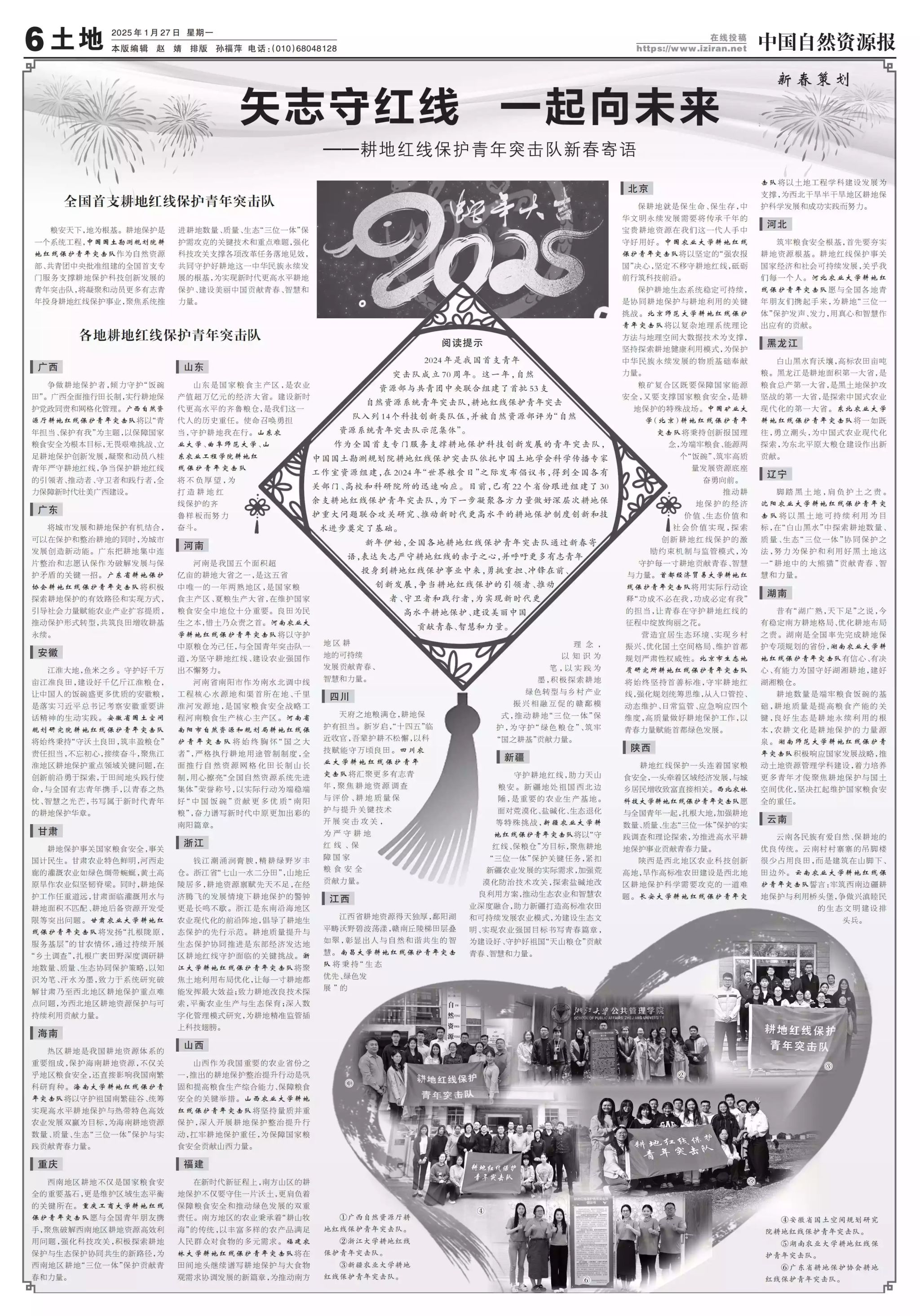 导航痕迹 欧冠官方网站 欧冠投注官网入口 学院首页 学院新闻 正文 学院新闻 通知公告 科研动态 就业服务 学生工作 聚焦资源 师生风采 欧冠官方网站耕地红线保护青年突击队在《中国自然资源报》发表新年寄语 2025年02月06日 魏雅丽 审核人:张宏霞 新年伊始,欧冠官方网站耕地红线保护青年突击队在《中国自然资源报》新春寄语:“天府之地粮满仓,耕地保护有担当。新岁启,‘十四五’临近收官,吾辈护耕不松懈,以科技赋能守万顷良田。” 据悉,2024年是我国首支青年突击队成立70周年。作为全国首支专门服务支撑耕地保护科技创新发展的青年突击队,耕地红线保护突击队由中国国土勘测规划院领衔,整合院内青年和中国土地学会科学传播专家工作室资源组建,在2024年“世界粮食日”之际,自然资源系统耕地红线保护青年突击队向全国青年发布《耕地红线保护青年突击队倡议书》。2024年10月我校欧冠投注官网入口土地资源科学系积极响应并加入耕地红线保护青年突击队,作为四川省首支自然资源系统青年突击队,致力于“筑牢耕地红线,护航天府粮仓”,全队所有成员均为欧冠投注官网入口土地资源科学系教师,队长由校党委常委、组织部部长高雪松担任。成立以来,欧冠官方网站耕地红线保护青年突击队坚持以习近平总书记的重要指示精神为指导,落实党中央、国务院关于严格保护耕地的决策部署,坚持最严格的耕地保护制度和节约用地制度,坚决守住耕地保护红线,助力打造新时代更高水平“天府粮仓”。突击队依托自然资源部耕地资源调查监测与保护利用重点实验室平台,自然资源部成都平原国土生态与土地利用野外科学观测研究站双重优势,促进耕地保护科技创新与科学普及比翼齐飞,全力支撑耕地保护领域各项改革任务落地落实。 上一条:学子寒假归乡路,实践赋能新征途 下一条:欧定华副教授参加“情系故乡 共建宜宾”叙州区在外人士返乡创业新春联谊会并发言 【关闭】