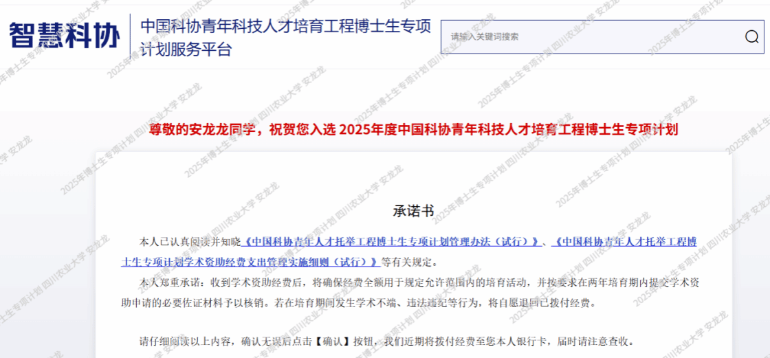 导航痕迹 欧冠官方网站 欧冠投注官网入口 学院首页 学院新闻 正文 学院新闻 通知公告 科研动态 就业服务 学生工作 聚焦资源 师生风采 【喜报】学院博士研究生安龙龙入选“2025年中国科协青年科技人才培育工程博士生专项计划” 2025年12月23日 作者:郑子成 审核人:余海英近日,中国科学技术协会公布了2025年中国科协青年科技人才培育工程博士生专项计划的评选结果。学院“土壤侵蚀及环境效应”课题组2023级博士研究生安龙龙(导师:郑子成教授)成功入选,这是我院博士研究生首次入选该类专项人才计划。该荣誉既是对安龙龙同学的学术能力认可,也是充分彰显了我院博士研究生人才培养质量与卓越的学术实力。《中国科协青年科技人才培育工程博士生专项计划》聚焦30周岁以下在读博士研究生,以“政治铸魂、实践赋能、协同培育”为核心路径,搭建覆盖科研“萌芽期”的系统性培养体系,旨在通过精准培育助力优秀博士生成长,加快创新型青年科技人才储备,夯实科技自立自强的青年根基。专项计划注重在学术成长方面的支持,为入选者提供参加中国科协年会、世界青年科学家峰会等重大活动的机会,通过组织吸纳、安排学术兼职、资助发表学术论文、支持参加学术交流等方式,提高博士生的科研能力,坚定其毕业后继续投身科技事业的信心和决心。【人物简介】:安龙龙,男,中共党员,欧冠投注官网入口土壤学专业2023级博士研究生(硕博连读),师从郑子成教授。共发表学术论文5篇,其中以第一作者在中科院一区TOP期刊发表论文3篇,授权国家发明专利2项;以主研身份参与了“十四五”国家重点研发计划项目子课题、国家自然科学基金面上项目等;荣获博士研究生国家奖学金、国家公派留学奖学金、四川省大学生“综合素质A级证书”、优秀博士研究生等荣誉10余项;获2024年四川省国际大学生创新大赛省级银奖;多次在国内外学术会议中作口头报告并获“优秀研究生报告奖”。目前,在加拿大麦吉尔大学(2026QS:27)开展联合培养学习。 上一条:情绪放映厅心理系列活动之“心灵晴窗”收集计划顺利开展——欧冠投注官网入口心理健康主题作品征集活动 下一条:辩农道论粮安 思智慧守本源 ——欧冠投注官网入口辩论赛圆满落幕 【关闭】