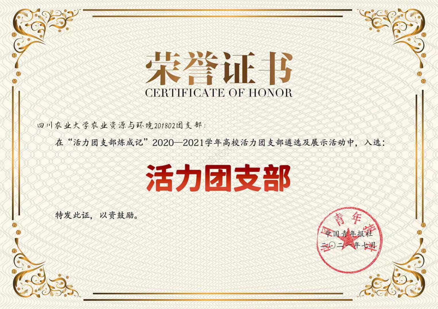 导航痕迹 欧冠官方网站 欧冠投注官网入口  学院首页  学院新闻  正文 学院新闻 通知公告 科研动态 就业服务 学生工作 聚焦资源 师生风采 我院1个团支部喜获“全国高校活力团支部” 2021年08月04日 近日,由团中央基层建设部指导,中国青年报开展的“活力团支部炼成记”2020-2021学年“全国高校活力团支部”遴选结果揭晓,经层层推荐选拔,我校欧冠投注官网入口农业资源与环境1802团支部从全国1600所高校的团支部中脱颖而出,喜获“全国高校活力团支部”荣誉称号。 农业资源与环境1802团支部自成立以来,始终以“兴中华之农事”为己任,经过三年的团结努力,支部学风优良,必修加权平均成绩和综测平均成绩连续三年位居同年级同专业第一,四级通过率达91.3%;支部科研氛围浓厚,成员参与科研项目达100%,发表学术论文、取得发明专利和实用新型专利10余个,专业技能大赛获奖10余人;支部积极参与无偿献血、抗击疫情等志愿活动,累计志愿服务时长700余小时。其中,由支部成员带队的“秦巴山区科技助农团队”获省级社会实践重点团队,支部获校级“五四红旗团支部”、“优秀班集体”、“五四红旗标兵团支部”等多项荣誉称号。 据悉,本次活动是为深入贯彻落实“全团大抓基层”“全团抓学校”部署,深化高校共青团改革,强化“一切工作到支部”理念,在团中央基层建设部指导下,中国青年报社开展“活力团支部炼成记”2020—2021学年高校活力团支部遴选及展示活动,1600所高校通过新媒体方式集中展示了在“党史学习教育”等方面的团支部建设成果和典型经验,1100万人次参与网络点赞。 上一条:我院获批建设自然资源部重点实验室 下一条:我院组织国家级田园综合体试点项目终期专家验收 【关闭】