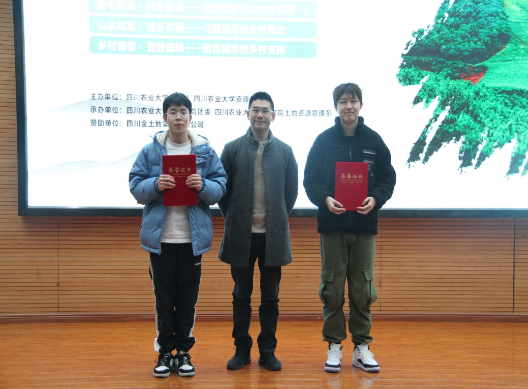 导航痕迹 欧冠官方网站 欧冠投注官网入口 学院首页 学院新闻 正文 学院新闻 通知公告 科研动态 就业服务 学生工作 聚焦资源 师生风采 第五届“金土地杯”美丽乡村创意规划设计大赛圆满落幕 2021年12月19日 作者:付雅婷、王童瑶 审核:张宏霞 来源:欧冠投注官网入口 12月17日下午,我校第五届“金土地”美丽乡村创意规划设计大赛在成都校区二教报告厅圆满落幕。欧冠投注官网入口副院长李冰、土地资源管理系副教授胡宗达、四川金土地实业有限公司总经理徐强、规划总工汪旭萍、人事行政部副经理艾百灵5人出席担任评委。 李冰副院长致辞 在决赛环节,经现场汇报形式激烈角逐,共1组团队获得一等奖;共2组获得二等奖;共3组获得三等奖;共3组获得优秀奖;另有1组通过“川农大资源院”微信平台获得最佳人气奖。大赛历时6个多月,以“疫中思策·共盼春来——后疫情时代的乡村实现”“山水相宜·城乡共栖——公园城市的乡村表达”“乡村画卷·因势流转——韧性城市的乡村支持”为主题,吸引数支团队多名师生参加。在初赛中,参赛团队通过实地踏勘、中期汇报、作品成果展等多个环节的层层选拔,9支队伍脱颖而出。 部分选手答辩现场 部分获奖团队 除了团队奖项,本次大赛还颁发了个人奖项,10位同学获得“金土地优秀学生奖”, 10位同学获得“金土地优秀学生干部奖”。 部分获奖个人 胡宗达教授致辞 金土地实业有限公司总经理徐强致辞 本次大赛将专业知识与当下疫情形势相结合,旨在推动人文地理与城乡规划、土地资源管理、地理信息科学、风景园林等相关专业建设与乡村振兴战略紧密对接,更好地考验同学们应时而变的实践能力,培养同学们顺势创新的实践精神,让学生更好地了解乡村、研究乡村、热爱乡村、建设乡村,用乡村梦实现青春梦,也充分彰显出我校教师较高的专业能力,为我校学科竞赛与人才培养积累了宝贵经验。 上一条:我院曾帆老师在欧洲城市转型国际学术论坛上作主旨报告 下一条:三位教授入选省科技协同创新促进会“碳中和”专家委员会 【关闭】