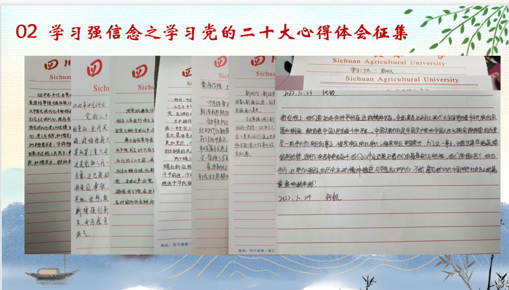 导航痕迹 欧冠官方网站 欧冠投注官网入口 学院首页 学院新闻 正文 学院新闻 通知公告 科研动态 就业服务 学生工作 聚焦资源 师生风采 学院开展“学习党的二十大,永远跟党走,奋进新征程”示范性主题团日活动 2022年10月28日 作者:石欣怡 黄欢 审核:张宏霞 来自:欧冠投注官网入口 为深入学习贯彻落实党的二十大精神,增强青年的责任担当意识,凝聚团员青年争做新时代青年的责任感、使命感。10月27日,欧冠投注官网入口开展了“学习党的二十大,永远跟党走,奋进新征程”示范性主题团日活动。学院各系教职工党支部教师代表、团委负责老师、研究生优秀党员代表、入党积极分子、团员青年代表共计200余人参加。 会议伊始,全体参会成员齐唱团歌。第九期校青马班学员、学院第九届团委学生兼职副书记姜睿玥带领全体同学学习党的二十大会议精神,全面号召团员青年手握新时代接力棒,扛起历史赋予新青年的责任与担当。 随后,来自学院第四期的青马班优秀学员代表通过连续十天打开学习活动,分享感悟、向全院各级团支部发出倡议;来自2020级土壤学专业的研究生优秀学生党员代表谢楠,通过自身生活、工作和科研经验并结合“三下乡”、“返家乡”社会实践、志愿服务、乡村振兴、创业就业等方面分享了自己的感悟,鼓励学弟学妹们确立目标,找好方向;学院教职工各党支部教师代表们,分别从各自学系介绍研究现况与成果,鼓励资源青年爱党、爱校、爱专业,根植红色血脉,夯实专业知识基础,丰富自身专业技能,做国家自然资源工作的后备人才,踔厉奋发向未来;新生用“锦绣山河”主题诗歌朗诵带领同学们感受祖国的锦绣山河,激发广大团员青年的报国之情,以拳拳爱国心,感铮铮中华魂。 最后,现场组织了《论党的青年工作》答题竞赛活动,让团员青年以更具参与感、互动性的学习形式深化对党的二十大的认识,并与在场青年师生一同唱响《光荣啊,中国共青团》。 学院各级团支部、团学干部通过线上线下等活动,开展主题读书分享活动和主题微团课录制,追忆百年青运史,共话青春担当,凝聚奋进力量,团结引领广大团员青年传承红色基因、坚守红色初心,听党话、跟党走,切实把思想和行动统一到党的二十大精神上来。 上一条:学院2022年秋季科研兴趣培养计划项目结题验收工作圆满结束 下一条:明晰前路寄壮志,严于律己更竞发 【关闭】