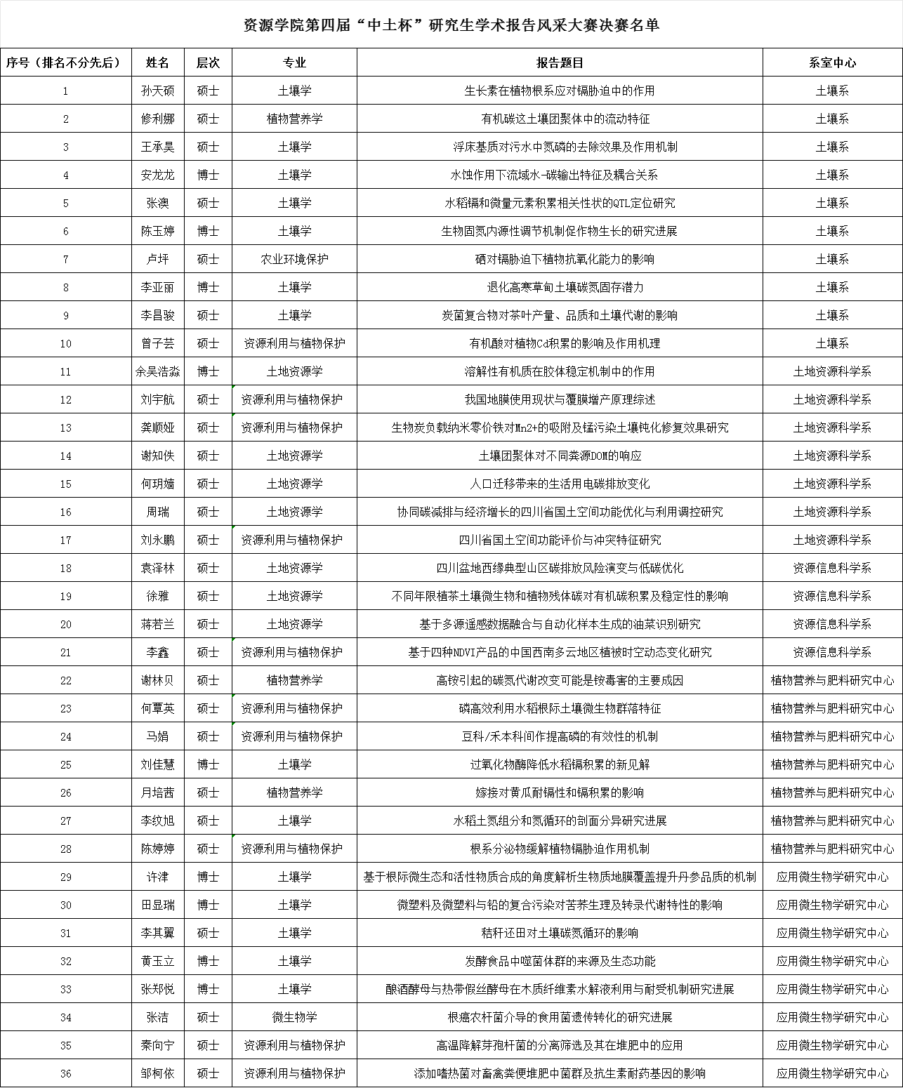 导航痕迹 欧冠官方网站 欧冠投注官网入口 学院首页 通知公告 正文 学院新闻 通知公告 科研动态 就业服务 学生工作 聚焦资源 师生风采 关于欧冠投注官网入口第四届研究生“中土杯”院内预选赛结果的公示 2024年11月05日 全体研究生及导师: 经学生个人申请,各二级学科组织答辩评审,现对进入第四届“中土杯”研究生学术报告风采大赛决赛的同学进行公示,公示期三天,若有异议请向学院杨老师处反映。请进入决赛的同学,积极准备,决赛预计于12月初举行(具体安排将另行通知)。 欧冠投注官网入口 2024年11月5日 上一条:关于开展欧冠投注官网入口2024年“创客周”沙龙座谈会的通知 下一条:欧冠投注官网入口关于2023-2024学年度 “国家奖学金”增补名单的公示 【关闭】
