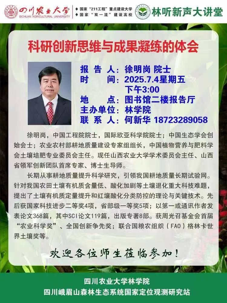 导航痕迹 欧冠官方网站 欧冠投注官网入口  学院首页  科研动态  正文 学院新闻 通知公告 科研动态 就业服务 学生工作 聚焦资源 师生风采 学术报告:科研创新思维与成果凝练的体会 2025年07月02日 上一条:关于开展“测土配方施肥二十年成就与展望” 征文活动的通知 下一条:温江区低空经济沙龙邀请 【关闭】